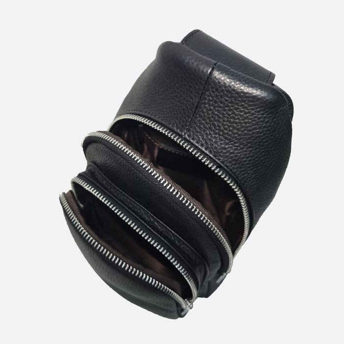 This men’s leather sling pack is built for strength and comfort. The soft but firm leather feels smooth to the touch, yet strong enough to handle daily use. The zippers are high-quality and easy to pull. The inside space is roomy, and you can fit all your small essentials without the bag looking bulky. The Sling shoulder bag design allows you to wear it how you want — over the shoulder or across the body. It’s perfect for travel, city walks, or casual outings.